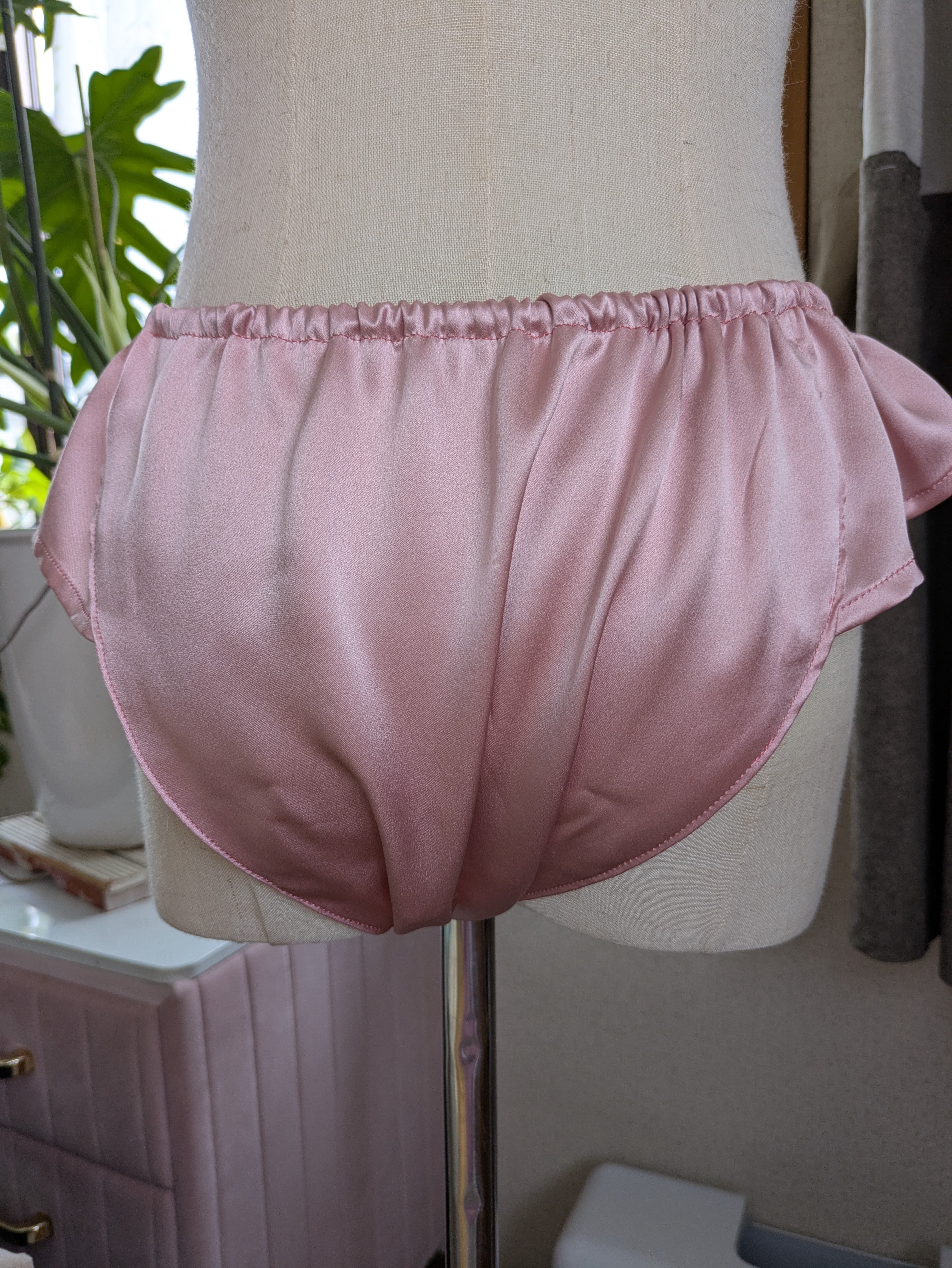 シルクサテンのフンティ◇ローズピンク✕ドットチュール