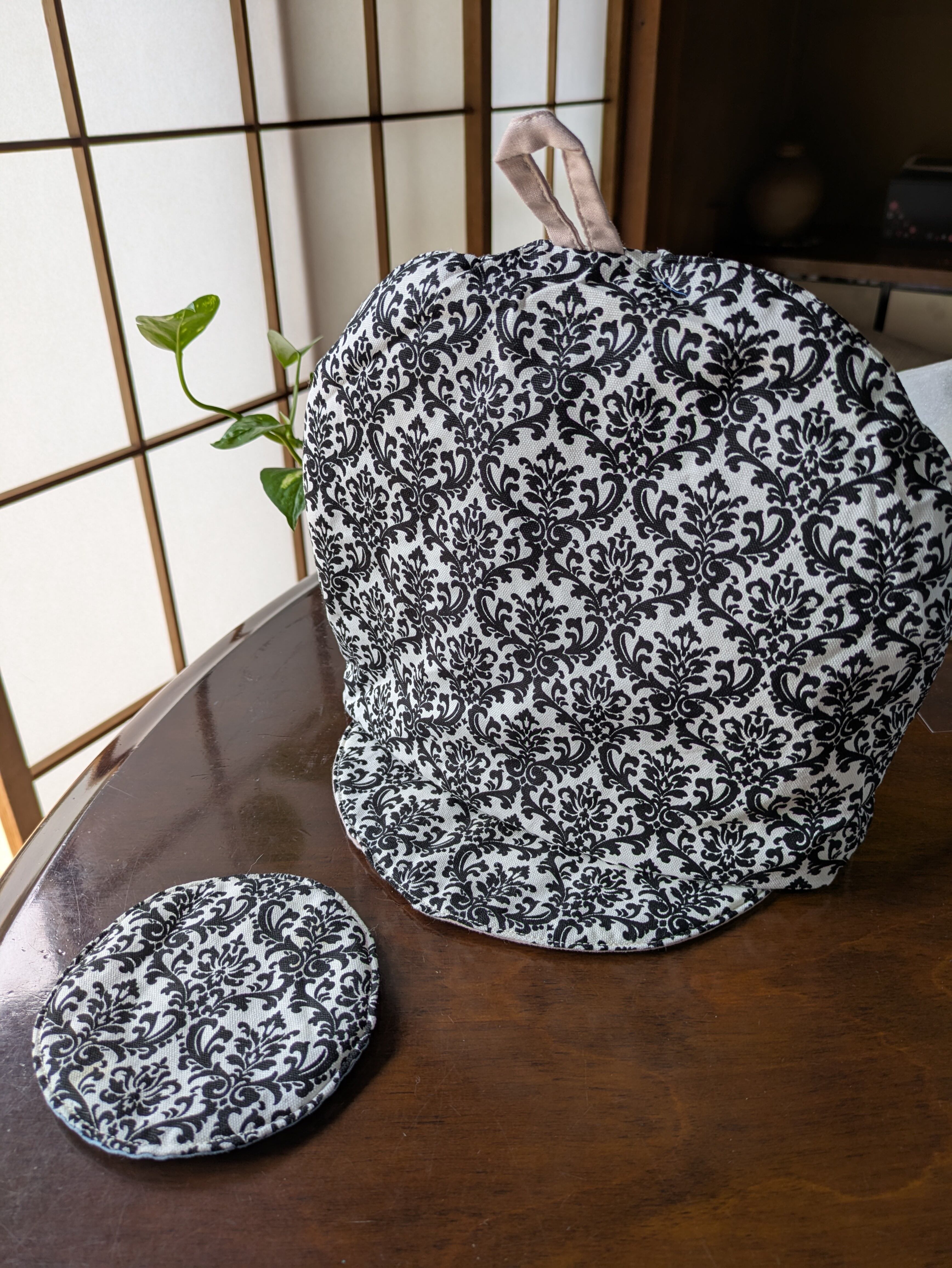 ポットが冷めにくくなるようにカバーするティーコゼとマット、コースター2枚の4点セット♡